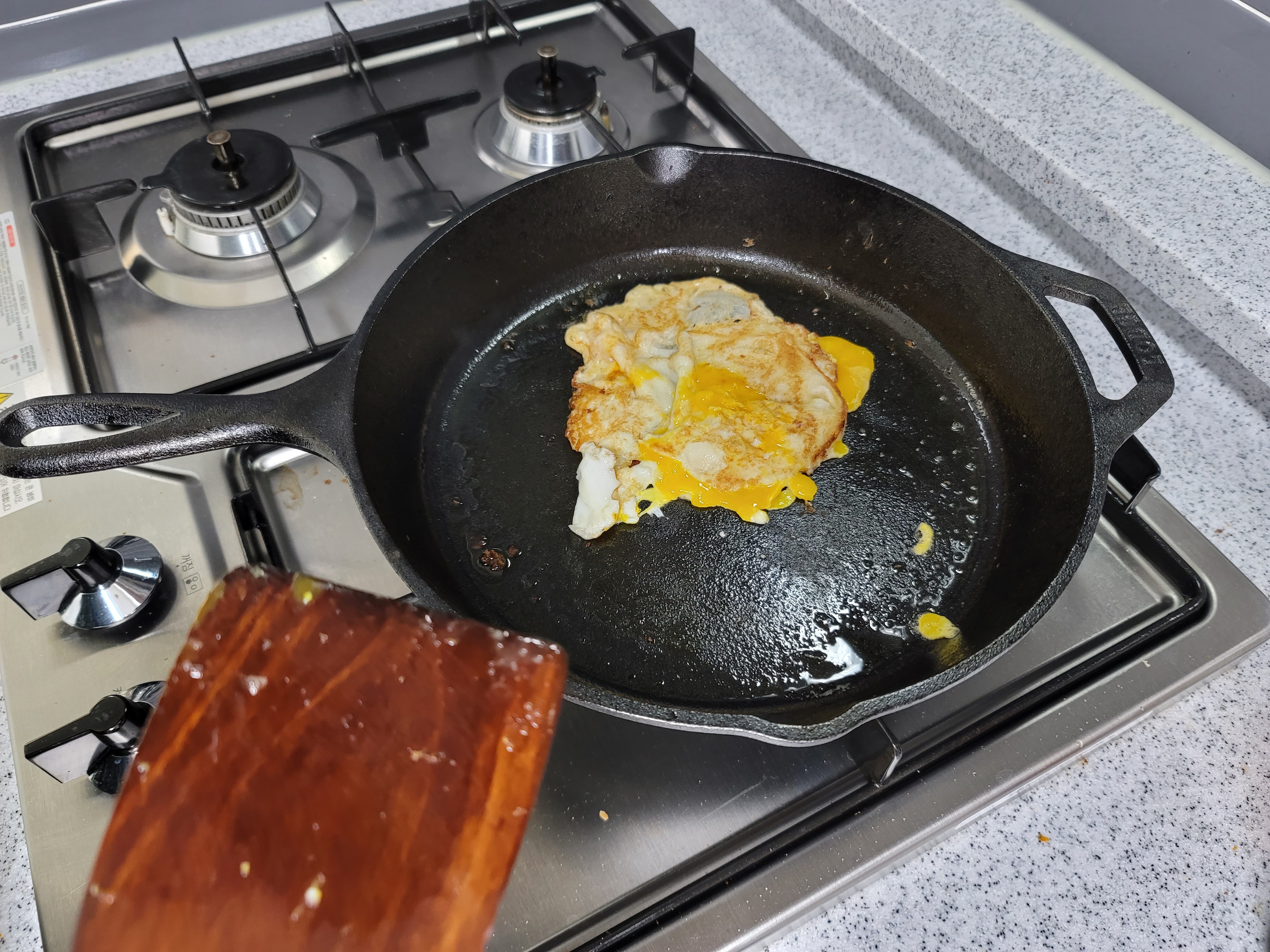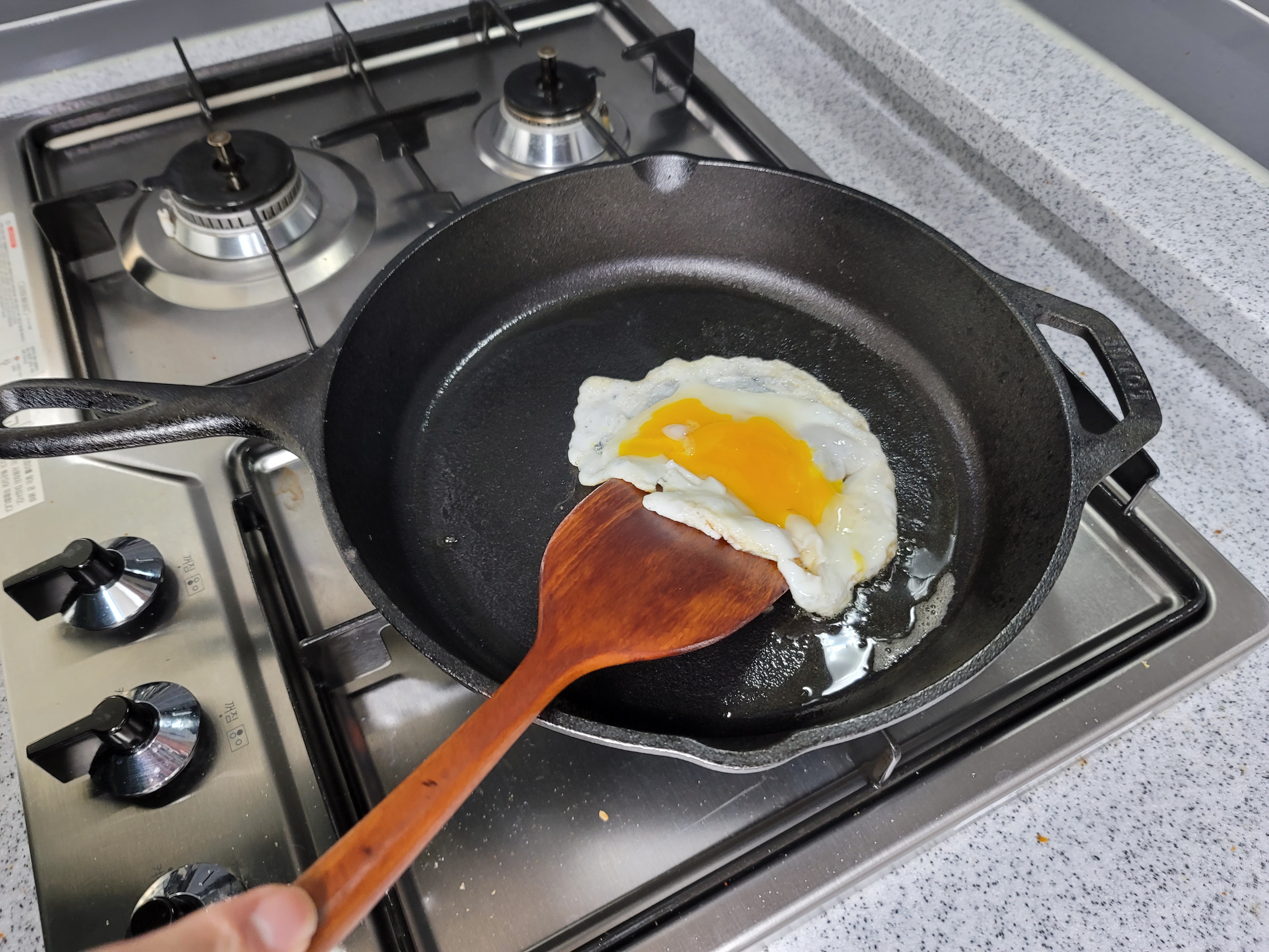 시즈닝 없이 계란을 구워본 결과 달라붙지 않고 잘 구워진다.